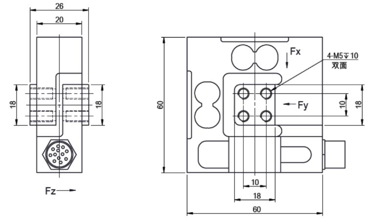 ●廣泛用于機(jī)械多維方向測(cè)力,如銑床磨床加工過(guò)程中刀具三個(gè)方向受力檢測(cè),機(jī)器人拋光三軸力的檢測(cè)